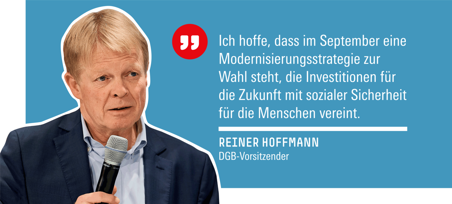 Ich hoffe, dass im September eine Modernisierungsstrategie zur Wahl steht, die Investitionen für die Zukunft mit sozialer Sicherheit für die Menschen vereint. Von Reiner Hoffmann