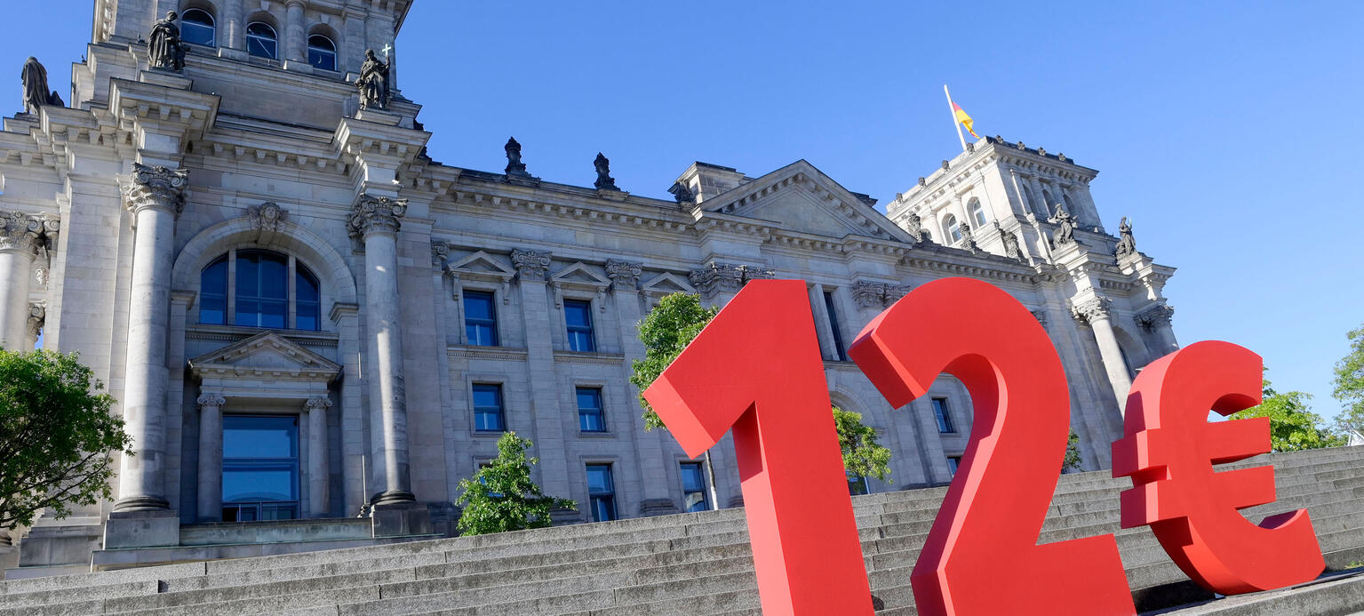 Kundgebung zur Befürwortung des 12-Euro-Mindestlohns vor dem Reichstagsgebäude. Pressemitteilungen