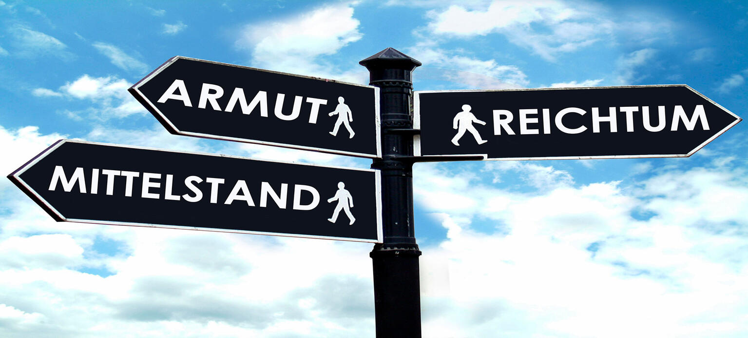Wegweiser, Symbolbild für Reichtum oder Armut oder Mittelstand Pressemitteilungen