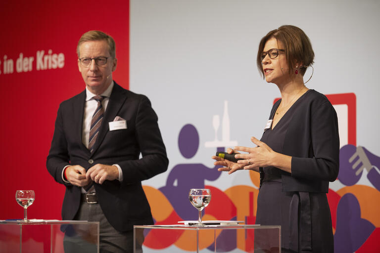 Am Vormittag hatte WSI-Direktorin Bettina Kohlrausch Einblick in die jüngsten Auswertungen ihres Instituts zu pandemiebedingten sozialen Ungleichheiten gewährt. „Vor Corona sind nicht alle gleich” lautete die Arbeitshypothese – die durch die Auswertung der Empirie bestätigt wurde. Vor allem im Bildungsbereich habe die Pandemie schichtspezifische Unterschiede in einem dramatischen Ausmaß vergrößert. „Die Schere ist weiter auseinander gegangen”, so Kohlrausch, „die Kinder, die es am meisten nötig gehabt hätten, sind im Homeschooling weiter zurückgefallen und haben richtig gelitten. Wir haben Schüler verloren.” Aufschlussreich war auch ein Blick auf den „Gender Care Gap”: Wegen der Schließung von Kitas und Schulen mussten Eltern teils monatelang zu Hause einspringen – und diese Arbeit wurde überwiegend von Frauen geleistet. Gerade Frauen in schwächerer Arbeitsmarktposition, also Minijobberinnen und Teilzeitkräfte, „haben sich in der Coronakrise tendenziell stärker vom Arbeitsmarkt zurückgezogen”, erklärte Bettina Kohlrausch. Ihre Befürchtung: Es handelt sich nicht um vorübergehende Verschiebungen, sondern „es besteht die Gefahr, dass Frauen nachhaltig vom Arbeitsmarkt verdrängt werden”.