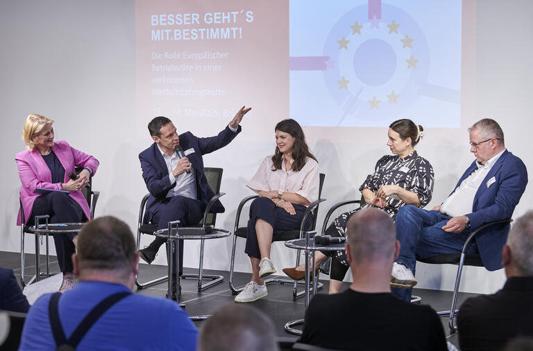 Neben diesen Diskussionen, neben Austausch und Vernetzung ging es bei der Tagung in Brüssel auch um ganz praktische Tipps für die Arbeit der europäischen Betriebsräte: In Workshops wurden betriebliche Regelungen für den Umgang mit KI besprochen, der vom globalen Gewerkschaftsverband IndustriALL entwickelte interaktive Transformations-Navigator (www.restructuring-navigator.eu) vorgestellt und Wege zur effektiven Zusammenarbeit mit Arbeitnehmervertreter*innen in anderen EU-Ländern erörtert.