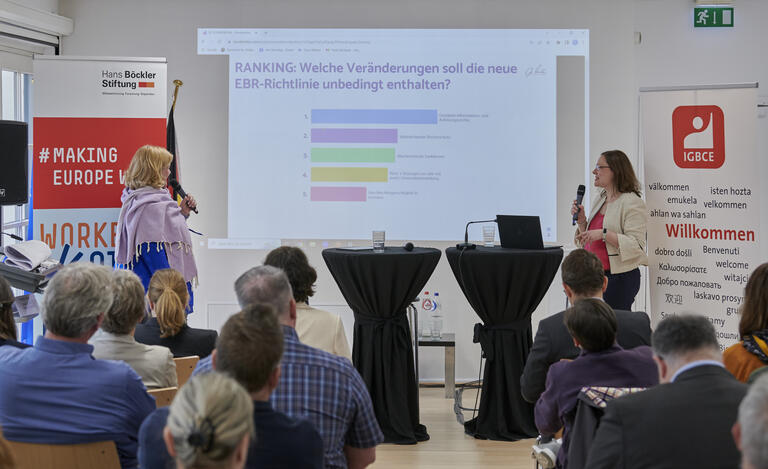 Ein anderes Beispiel: das Lieferkettensorgfaltsgesetz. Es trat mit Jahresbeginn in Kraft und gilt ab nächstem Jahr für alle Unternehmen ab 1.000 Beschäftigten. Isabel Eder, Abteilungsleiterin Mitbestimmung der IGBCE, wies daraufhin, dass im Wirtschaftsausschuss die Themen des Gesetzes künftig beantwortet und behandelt werden müssen. In die Richtlinie für Europäische Betriebsräte wurde dieser Passus vorerst nicht explizit aufgenommen, aber Anhörungs- und Konsultationsrechte gelten auch für unternehmerische Sorgfaltspflichten, so Eder. Die Einhaltung von Menschenrechten kann zudem in EBR-Vereinbarungen berücksichtigt werden.