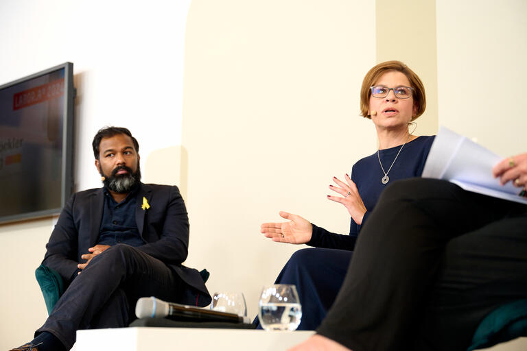 Die Lücke Demokratieverständnis war Thema der dritten großen Runde auf der diesjährigen LABOR.A. Darüber diskutierten Stephan Anpalagan von Demokratie in Arbeit und Bettina Kohlrausch, Wissenschaftliche Direktorin des Wirtschafts- und Sozialwissenschaftlichen Instituts (WSI) der Hans-Böckler-Stiftung.
